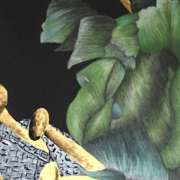 This selection of drawings was the inspiration behind the embroidery samples of this project. Based on hand-made artefacts and still life arrangements, these drawings showcase a new approach to mark-making and colour blocking of shapes as well as the combination of delicate shading using colour pencils paired with opaque painted details.